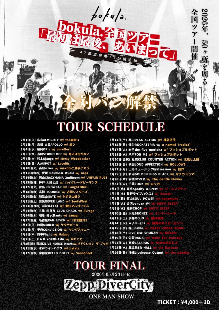 bokula.全50ヶ所を巡る全国ツアー「最初は最後、あいまって」